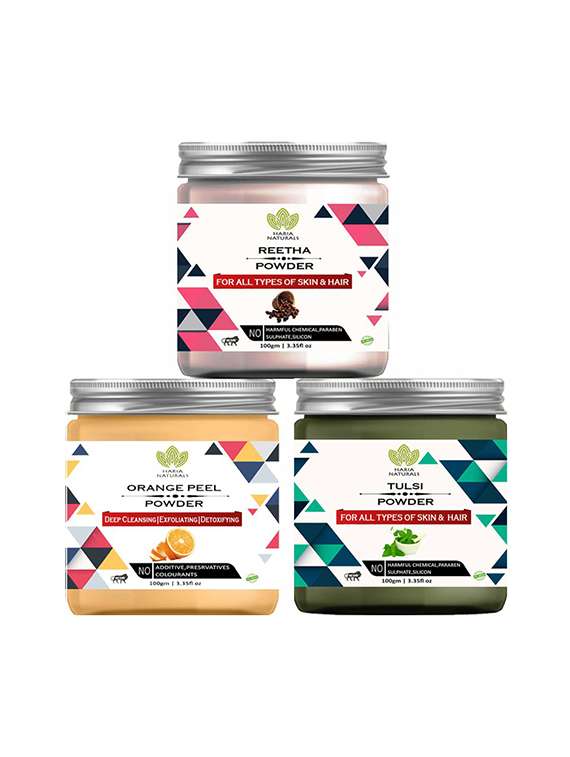 - » 100% pure & naturals reetha powder 100gm & orange peel powder 100gm & tulsi powder 100gm (pack of 3) 300gm