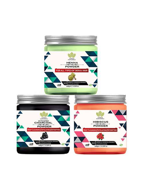 - » 100% pure & naturals henna powder 100gm & charcoal powder 100gm & hibiscus powder 100gm (pack of 3) 300gm
