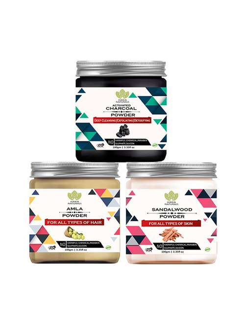 100% pure & naturals charcoal powder 100gm & amla powder 100gm & sandalwood powder 100gm (pack of 3) 300gm