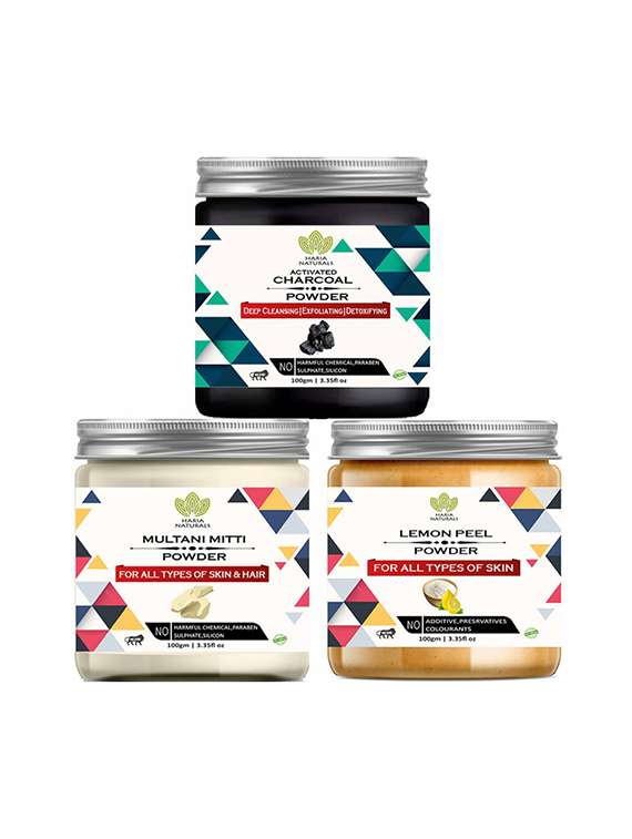 - » 100% pure & naturals charcoal powder 100gm & multani mitti powder 100gm & lemon peel powder 100gm (pack of 3) 300gm
