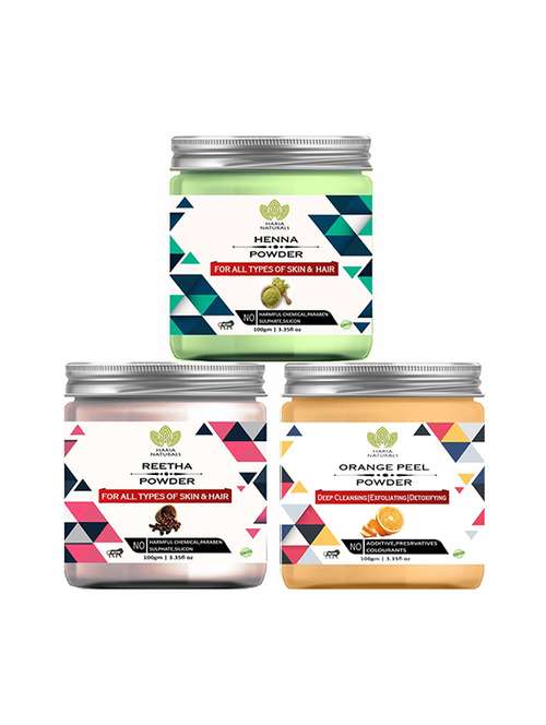 - » 100% pure & naturals henna powder 100gm & reetha powder 100gm & orange peel powder 100gm (pack of 3) 300gm