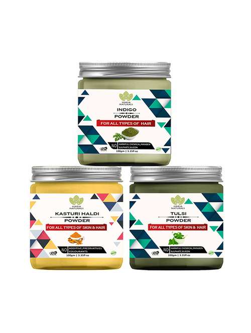 - » 100% pure & naturals indigo powder 100gm & kasturi haldi powder 100gm & tulsi powder 100gm (pack of 3) 300gm