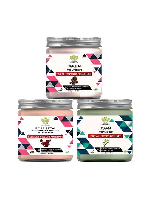100% pure & naturals reetha powder 100gm & rose petal powder 100gm & neem powder 100gm (pack of 3) 300gm