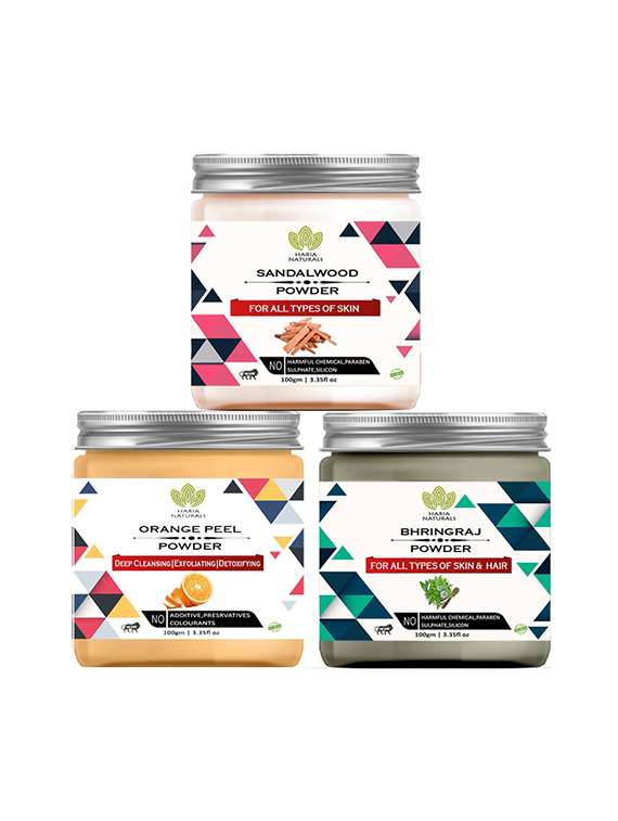 - » 100% pure & naturals sandalwood powder 100gm & orange peel powder 100gm & bhringraj powder 100gm (pack of 3) 300gm