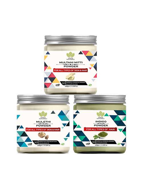 - » 100% pure & naturals multani mitti powder 100gm & mulethi powder 100gm & indigo powder 100gm (pack of 3) 300gm