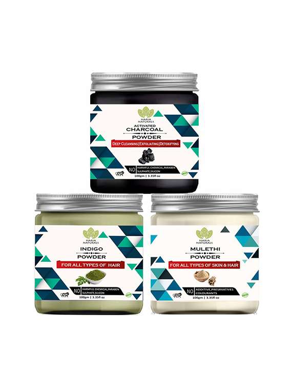 - » 100% pure & naturals charcoal powder 100gm & indigo powder 100gm & mulethi powder 100gm (pack of 3) 300gm