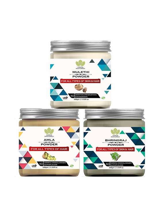 - » 100% pure & naturals mulethi powder 100gm & amla powder 100gm & bhringraj powder 100gm (pack of 3) 300gm