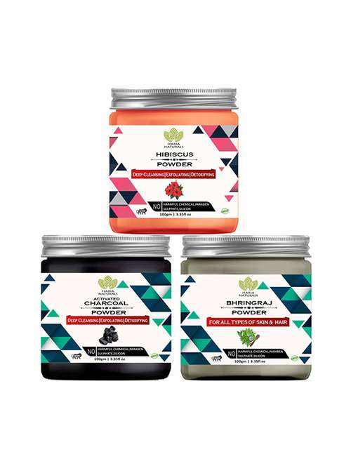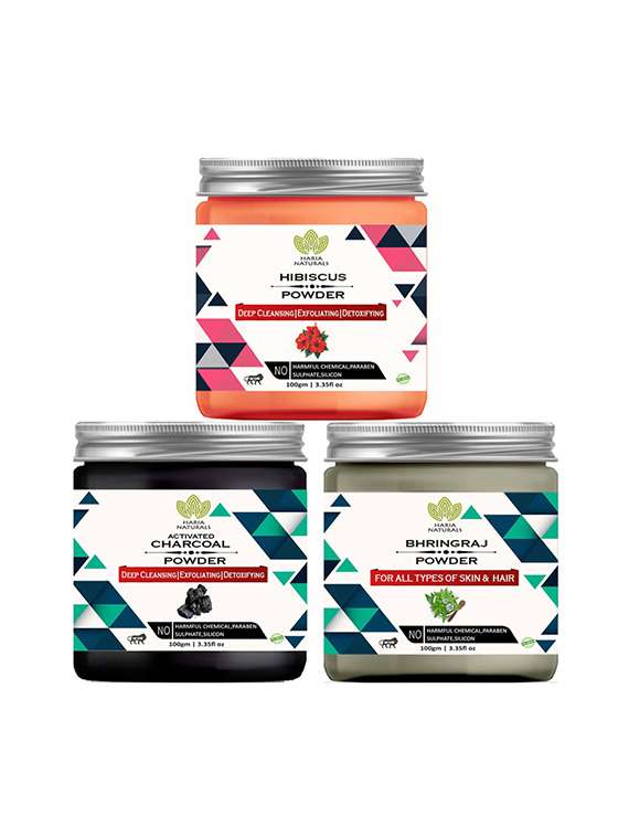 - » 100% pure & naturals hibiscus powder 100gm & charcoal powder 100gm & bhringraj powder 100gm (pack of 3) 300gm