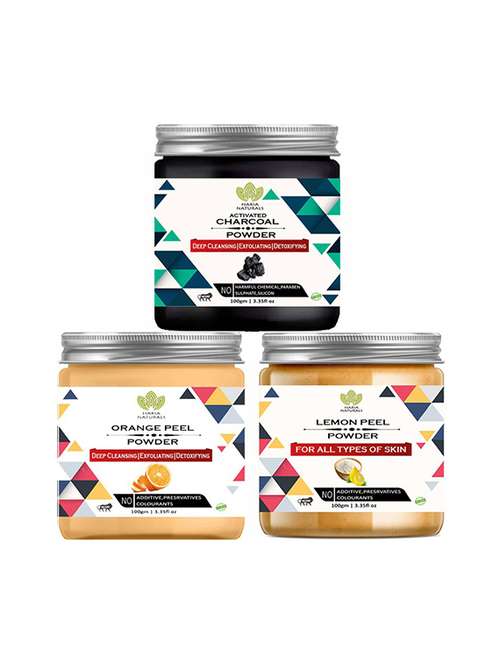 100% pure & naturals charcoal powder 100gm & orange peel powder 100gm & lemon peel powder 100gm (pack of 3) 300gm