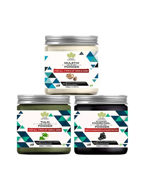 - » 100% pure & naturals mulethi powder 100gm & tulsi powder 100gm & charcoal powder 100gm (pack of 3) 300gm