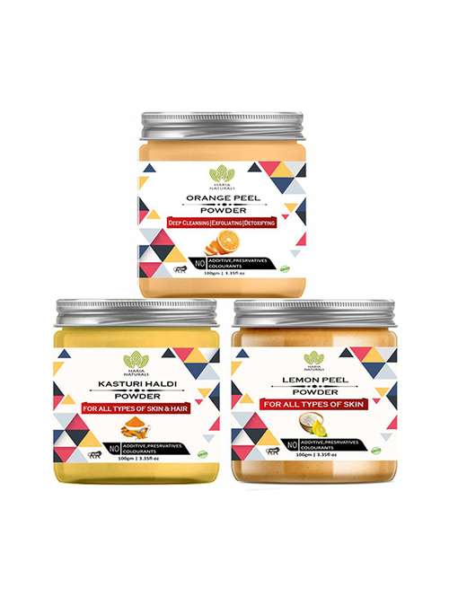 100% pure & naturals orange peel powder 100gm & kasturi haldi powder 100gm & lemon peel powder 100gm (pack of 3) 300gm