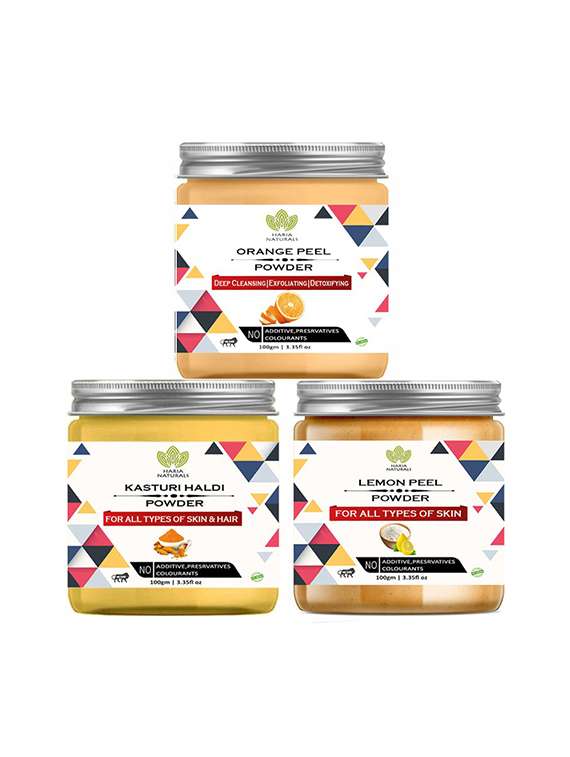 - » 100% pure & naturals orange peel powder 100gm & kasturi haldi powder 100gm & lemon peel powder 100gm (pack of 3) 300gm