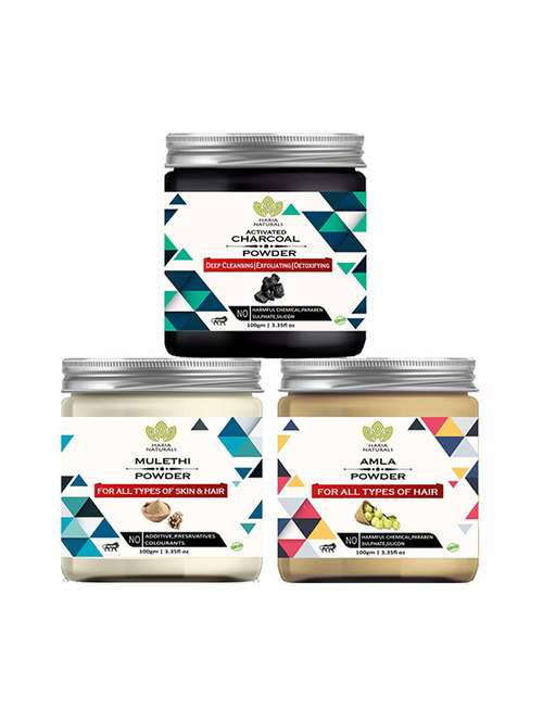- » 100% pure & naturals charcoal powder 100gm & mulethi powder 100gm & amla powder 100gm (pack of 3) 300gm