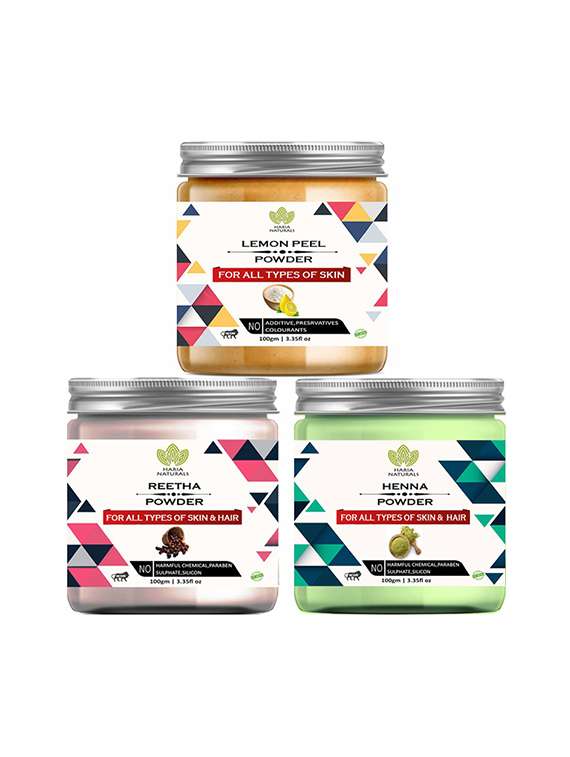 - » 100% pure & naturals lemon peel powder 100gm & reetha powder 100gm & henna powder 100gm (pack of 3) 300gm