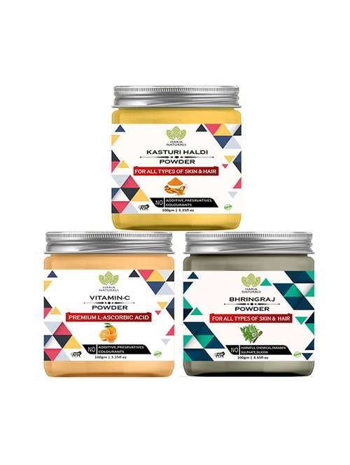 - » 100% pure & naturals kasturi haldi powder 100gm & vitamin-c powder 100gm & bhringraj powder 100gm (pack of 3) 300gm