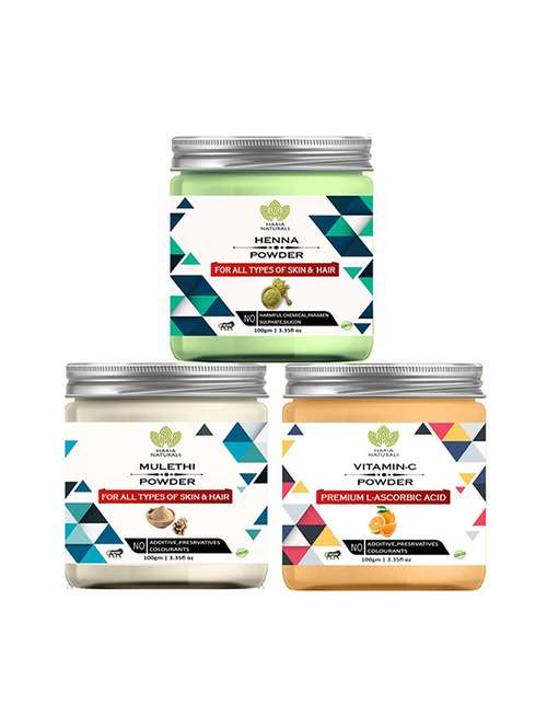 - » 100% pure & naturals henna powder 100gm & mulethi powder 100gm & vitamin-c powder 100gm (pack of 3) 300gm