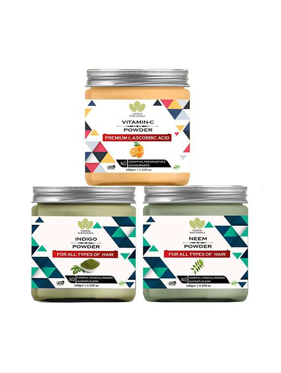 - » 100% pure & naturals vitamin-c powder 100gm & indigo powder 100gm & neem powder 100gm (pack of 3) 300gm