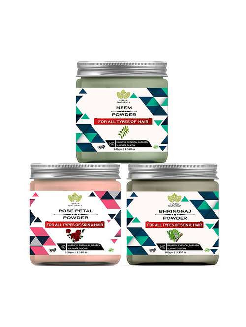 100% pure & naturals neem powder 100gm & rose petal powder 100gm & bhringraj powder 100gm (pack of 3) 300gm - 18639652 - Very Small Image - 1