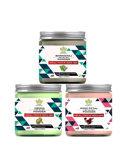 - » 100% pure & naturals bhringraj powder 100gm & henna powder 100gm & rose petal powder 100gm (pack of 3) 300gm