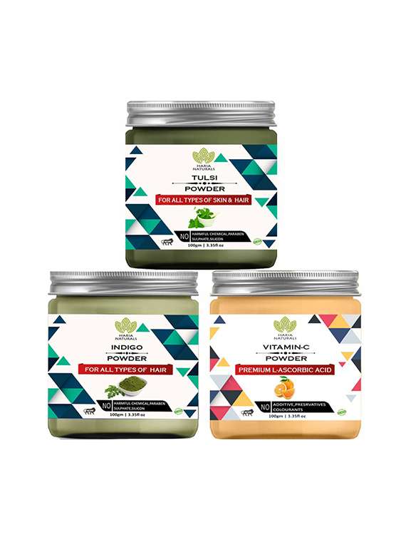100% pure & naturals tulsi powder 100gm & indigo powder 100gm & vitamin-c powder 100gm (pack of 3) 300gm