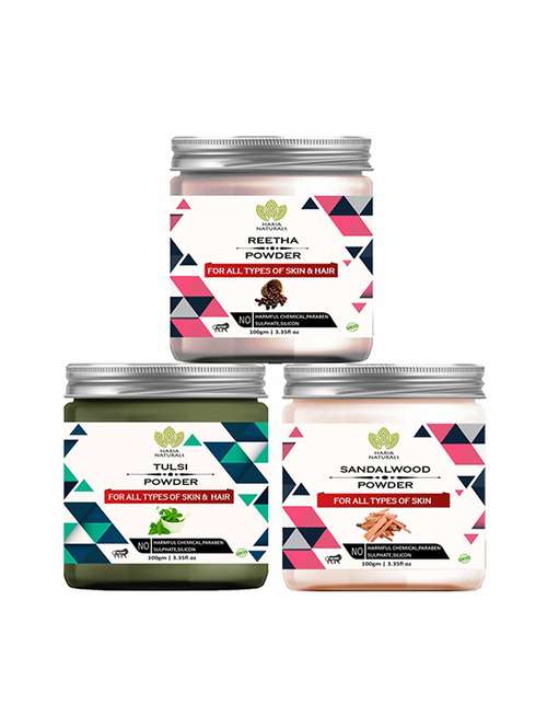- » 100% pure & naturals reetha powder 100gm & tulsi powder 100gm & sandalwood powder 100gm (pack of 3) 300gm