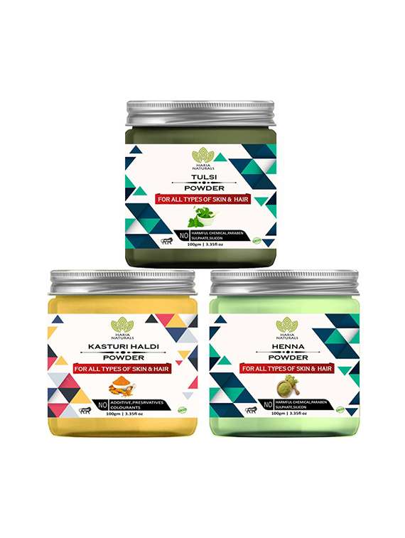 100% pure & naturals tulsi powder 100gm & kasturi haldi powder 100gm & henna powder 100gm (pack of 3) 300gm