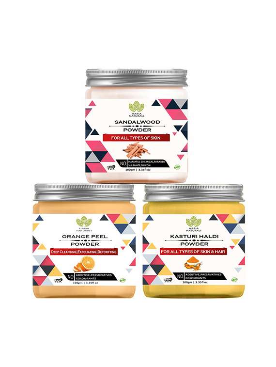 - » 100% pure & naturals sandalwood powder 100gm & orange peel powder 100gm & kasturi haldi powder 100gm (pack of 3) 300gm