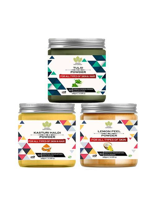 - » 100% pure & naturals tulsi powder 100gm & kasturi haldi powder 100gm & lemon peel powder 100gm (pack of 3) 300gm