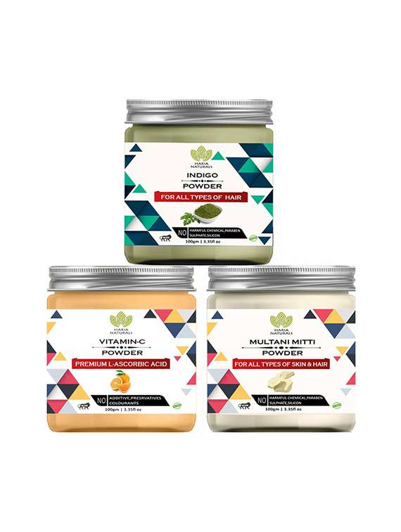 - » 100% pure & naturals indigo powder 100gm & vitamin-c powder 100gm & multani mitti powder 100gm (pack of 3) 300gm
