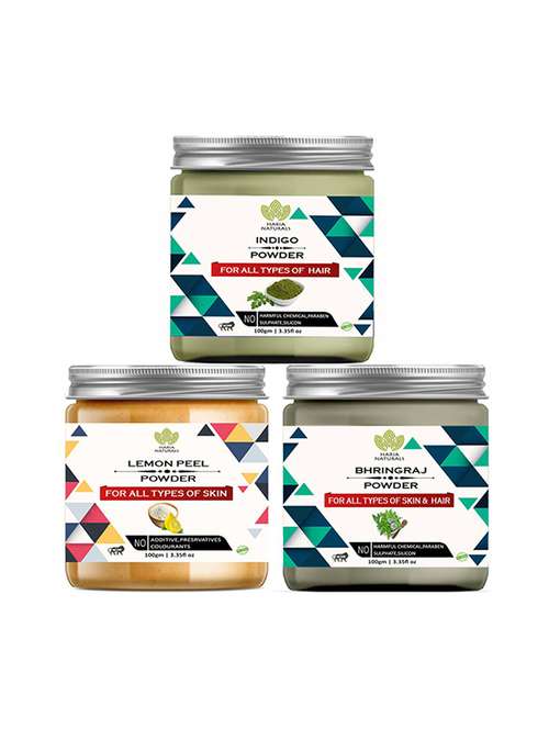 100% pure & naturals indigo powder 100gm & lemon peel powder 100gm & bhringraj powder 100gm (pack of 3) 300gm