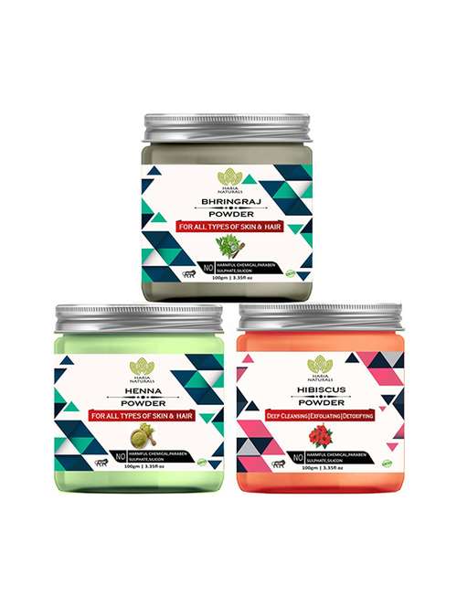 - » 100% pure & naturals bhringraj powder 100gm & henna powder 100gm & hibiscus powder 100gm (pack of 3) 300gm