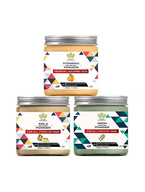 - » 100% pure & naturals vitamin-c powder 100gm & amla powder 100gm & neem powder 100gm (pack of 3) 300gm