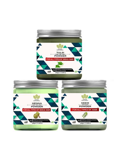 - » 100% pure & naturals tulsi powder 100gm & henna powder 100gm & neem powder 100gm (pack of 3) 300gm