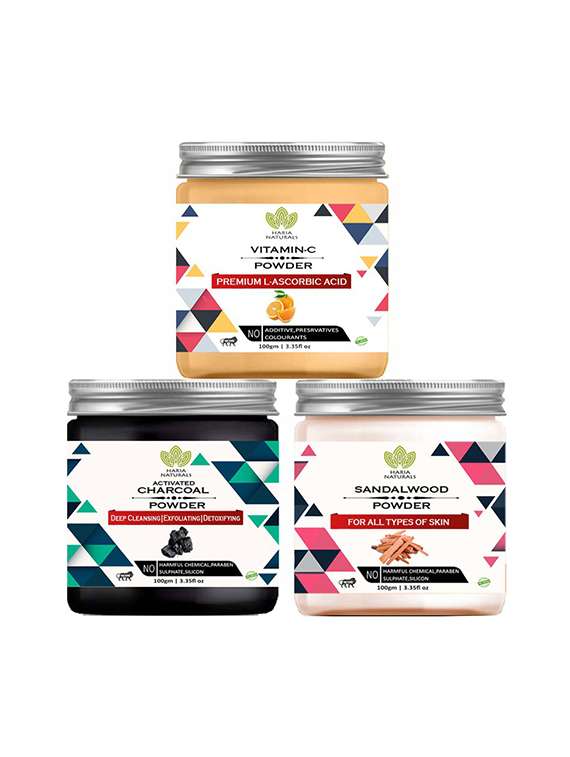 - » 100% pure & naturals vitamin-c powder 100gm & charcoal powder 100gm & sandalwood powder 100gm (pack of 3) 300gm