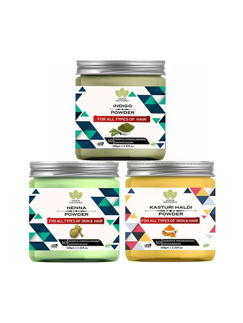 - » 100% pure & naturals indigo powder 100gm & henna powder 100gm & kasturi haldi powder 100gm (pack of 3) 300gm