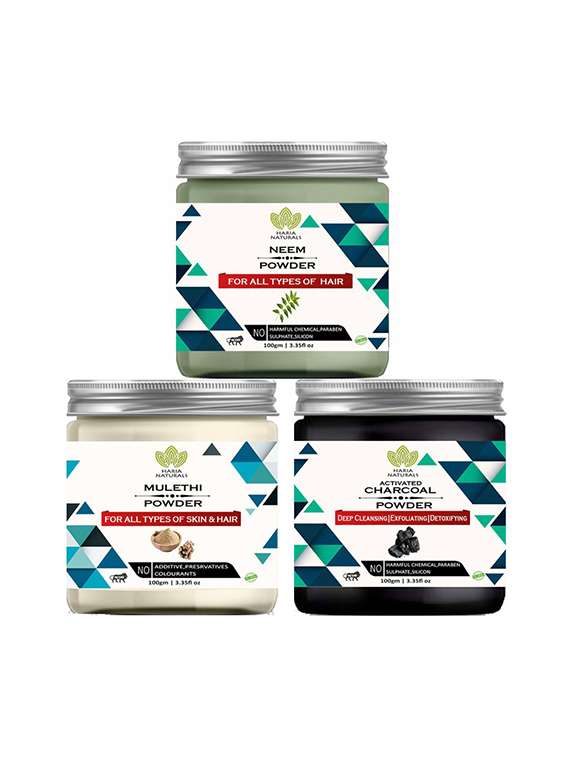 - » 100% pure & naturals neem powder 100gm & mulethi powder 100gm & charcoal powder 100gm (pack of 3) 300gm