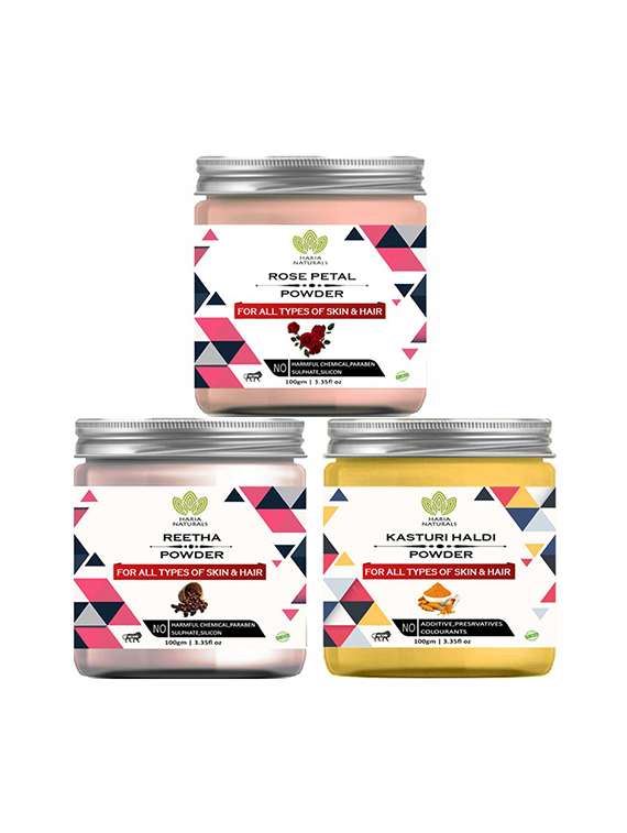 100% pure & naturals rose petal powder 100gm & reetha powder 100gm & kasturi haldi powder 100gm (pack of 3) 300gm