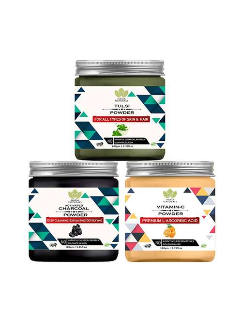 100% pure & naturals tulsi powder 100gm & charcoal powder 100gm & vitamin-c powder 100gm (pack of 3) 300gm