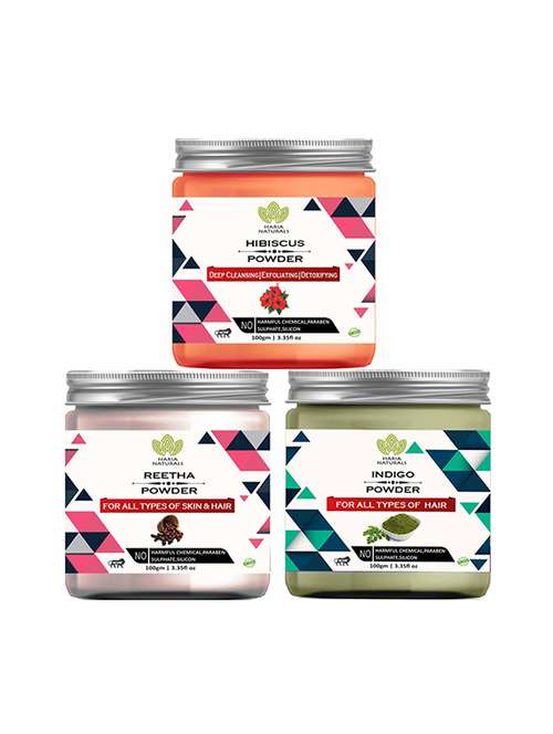 - » 100% pure & naturals hibiscus powder 100gm & reetha powder 100gm & indigo powder 100gm (pack of 3) 300gm