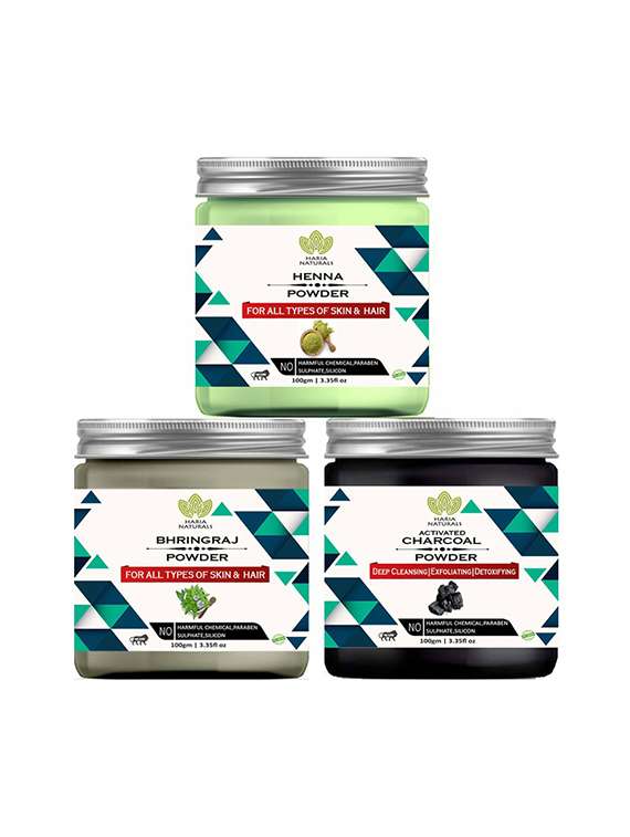 - » 100% pure & naturals henna powder 100gm & bhringraj powder 100gm & charcoal powder 100gm (pack of 3) 300gm