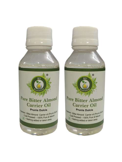 - » r v essential pure bitter almond carrier oil (100ml+100ml) pack of two- prunis dulcis (100% pure and natural cold pressed)
