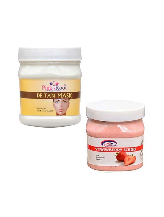 pink root de tan mask 500gm with strawberry scrub 500gm