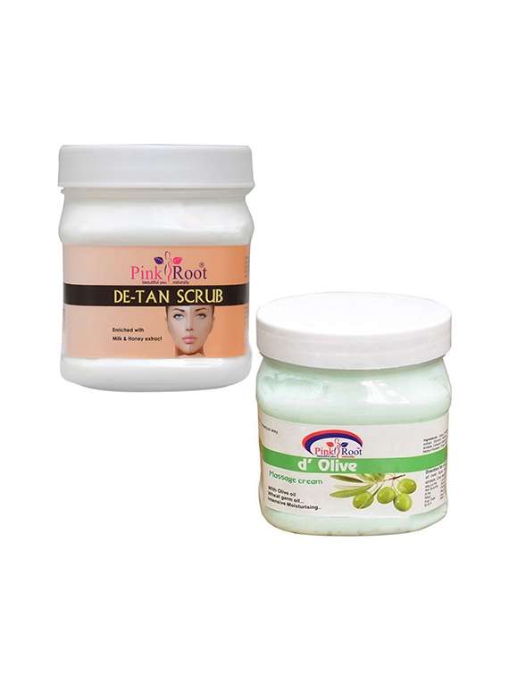 - » pink root de tan scrub 500gm with d olive cream 500gm