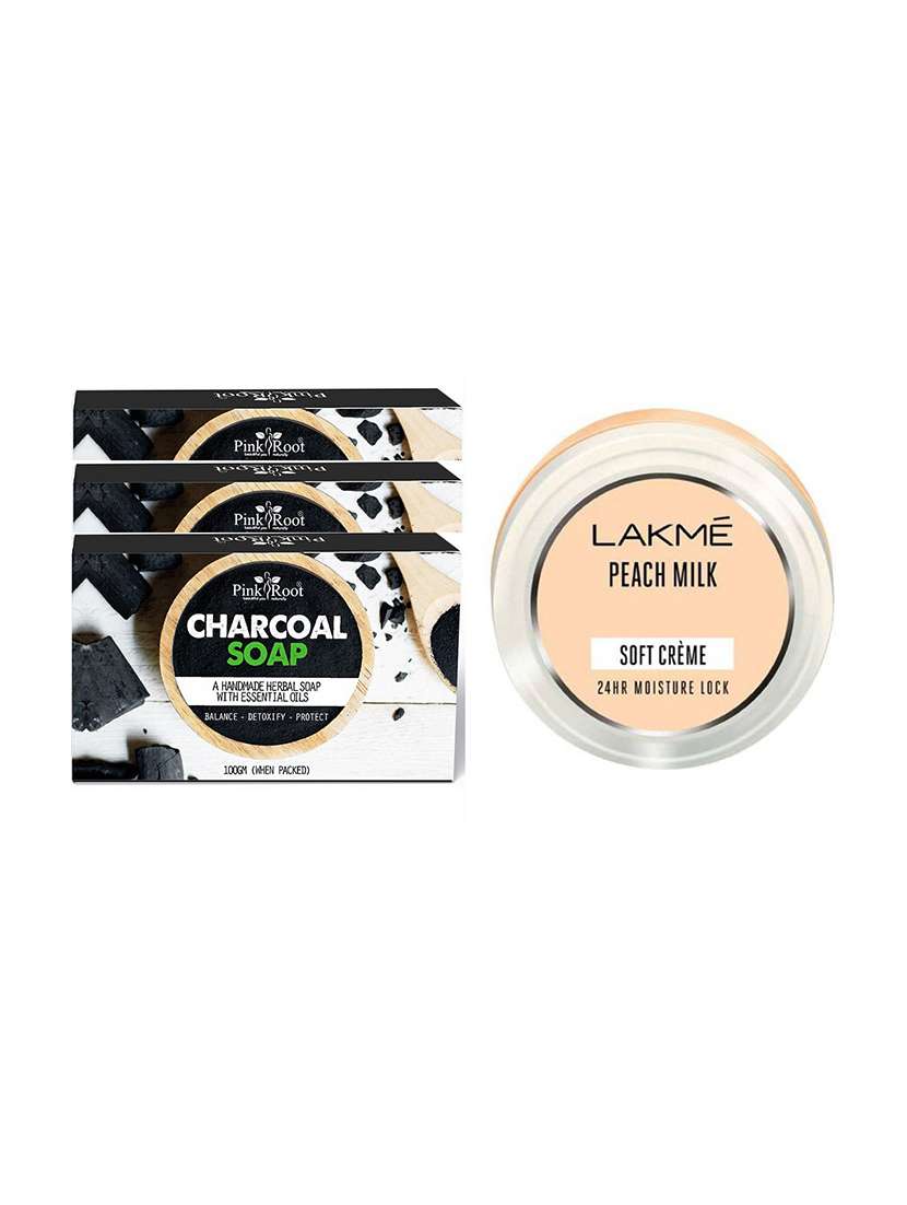 - » charcoal soap pack of 3 with lakme peach milk soft creme