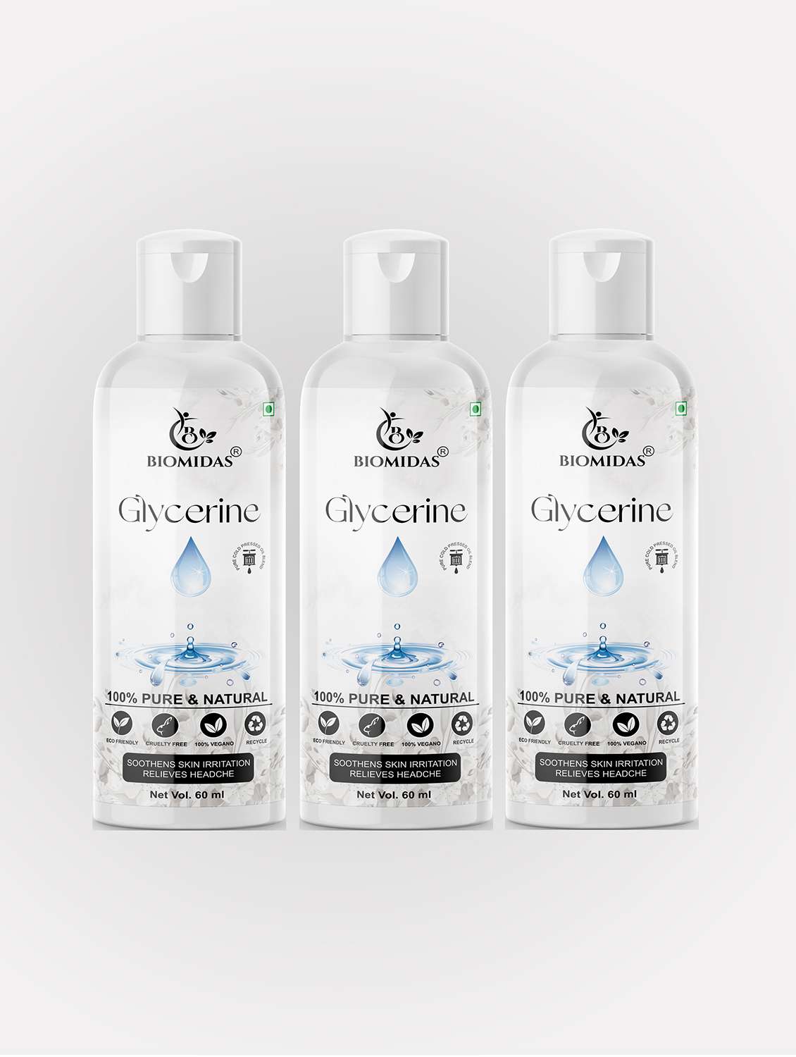 biomidas 100% natural glycerine for cleansing & refreshing skin pore tightening 60ml (pack of 3)