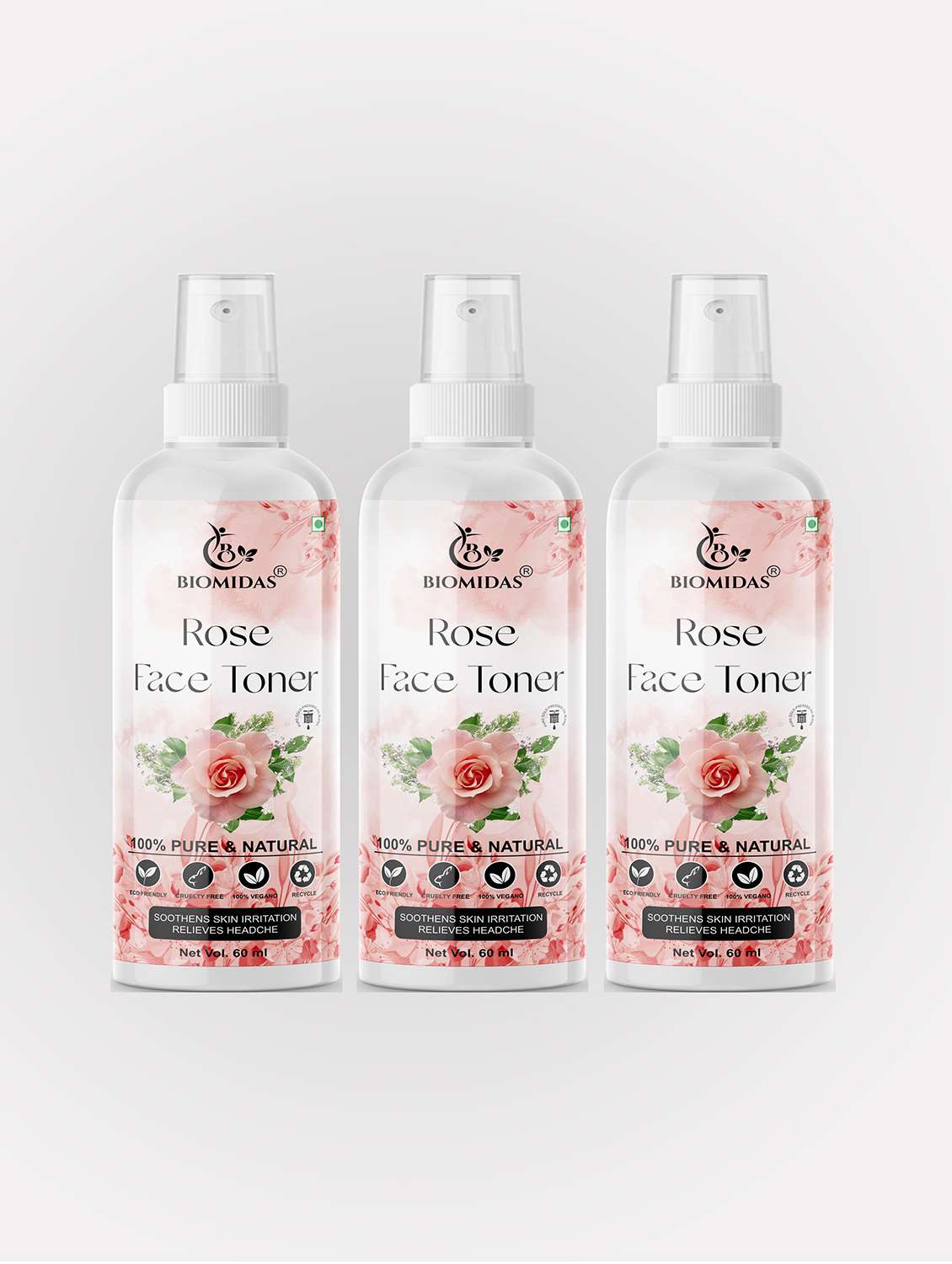- » biomidas 100% natural rose toner for cleansing & refreshing skin pore tightening toner with spray 60ml (pack of 3)