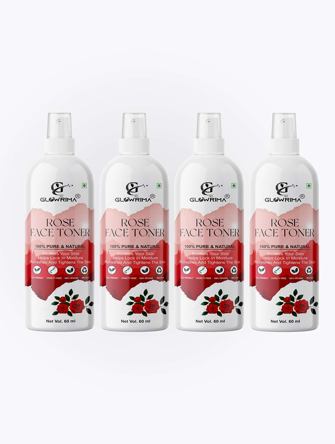 - » glowrima 100% natural rose toner for cleansing & refreshing skin pore tightening toner with spray 60ml (pack of 4)