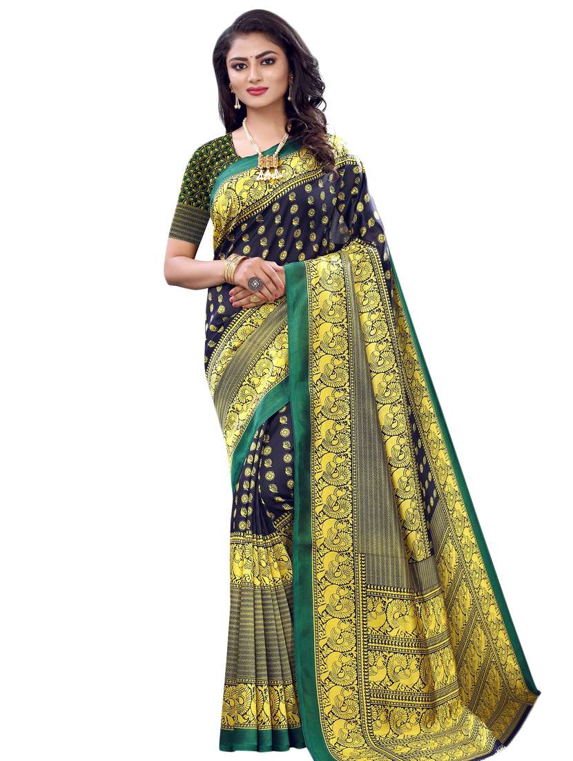 - » navy art silk printed saree with blouse