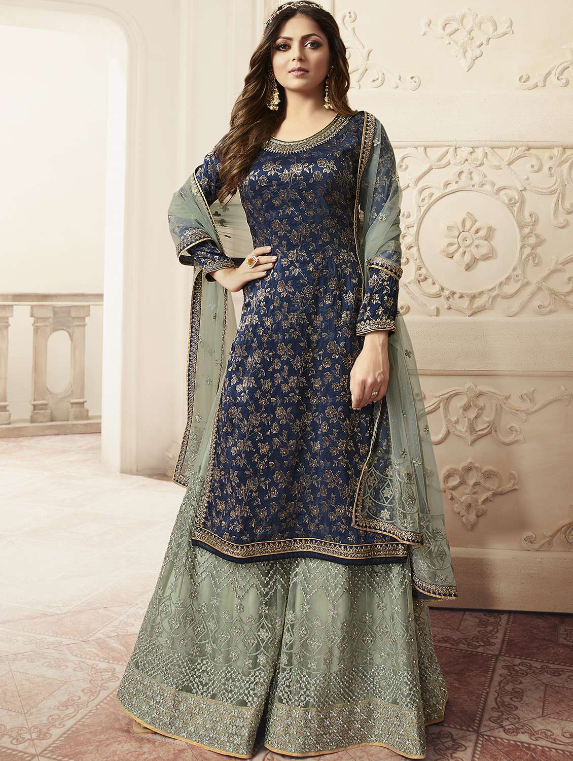 embroidered semi-stitched sharara suit set  - 17372869 - Very Small Image - 1