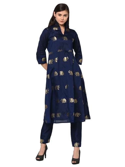 foil printed flared kurta with pant set